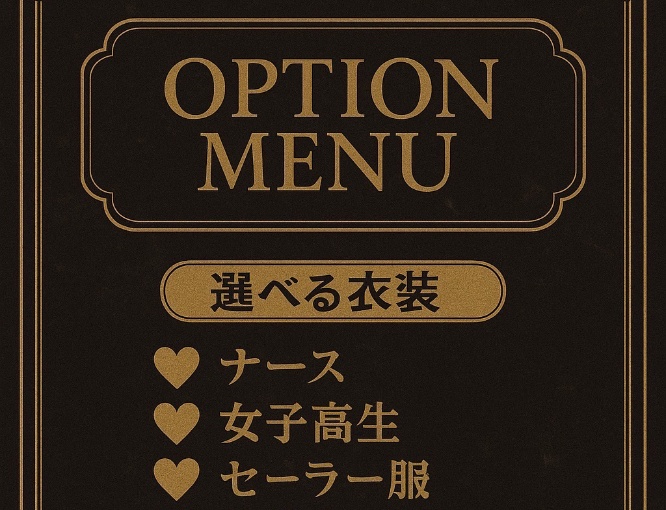 | ★本格メンズエステ★ スペシャルセット | +8,000円 紙ショーツ(T)/ミラー(鏡)/15分延長付き 選べる衣装チェンジ/極液/スキンシップ +本格メンズエステ手技が組み込まれる 豪華でお得なスペシャルセットです! (例)通常90分コース+スペシャル 16,000円+8,000円 合計105分 24,000円 |